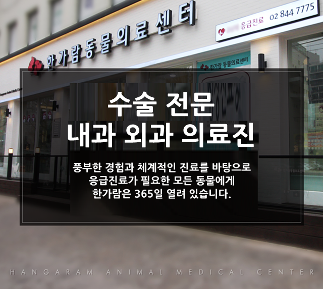 서울시 영등포구 영등포로 387 (중앙빌딩) 한가람 동물의료센터 (지번 : 서울시 영등포구 신길 65-106) 대표 : 장민석 | 사업자등록번호 : Copyright © 2016 365 한가람 동물의료센터 All rights reserved.